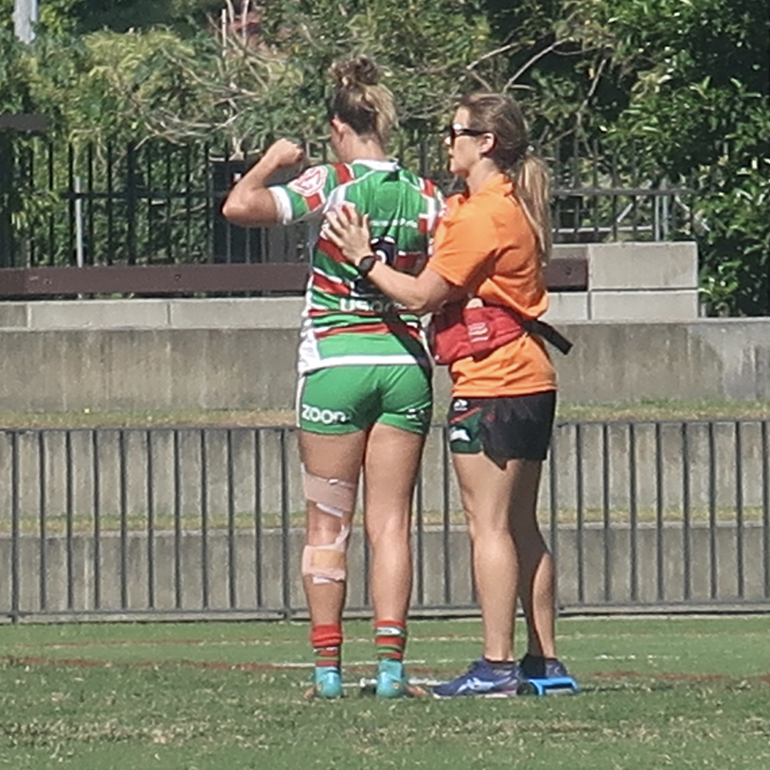 Leaving that job was the best thing I did for my career, I enjoyed my time but my passion was in sports medicine. Having permanent residency meant I could apply for jobs anywhere and also to work casually with football teams. I got a job working in a sports clinic and doing sports coverage for the local AFL team. Within six months through a colleague, I got put forward for a position with the South Sydney Rabbitohs for the position as lead physiotherapist for their senior women’s NRL team.